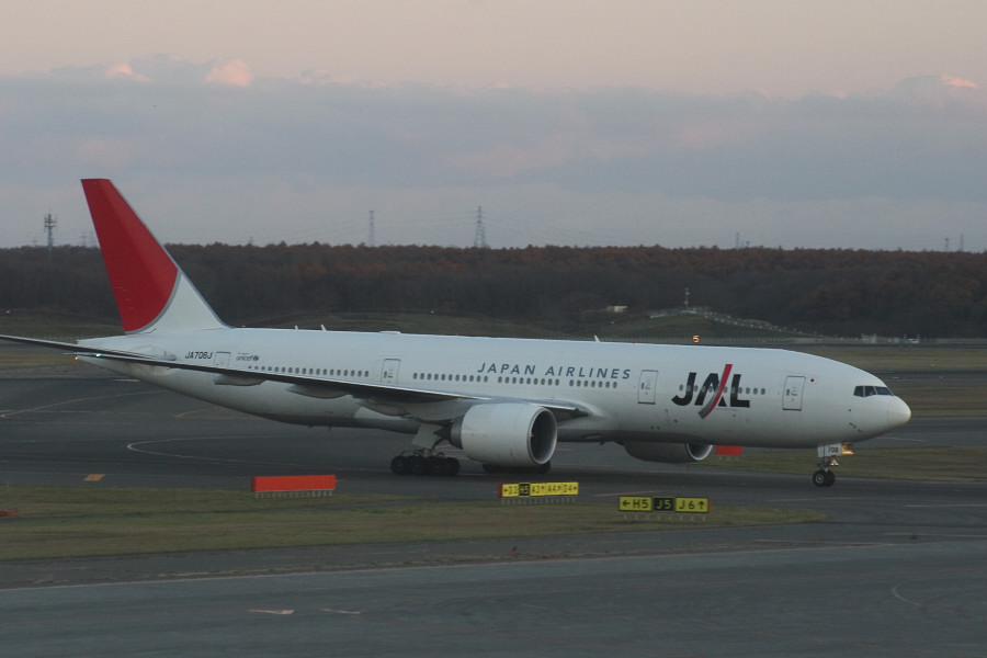 JL4707/4708便で関空から飛来した、B777-200ER(JA706J)。
