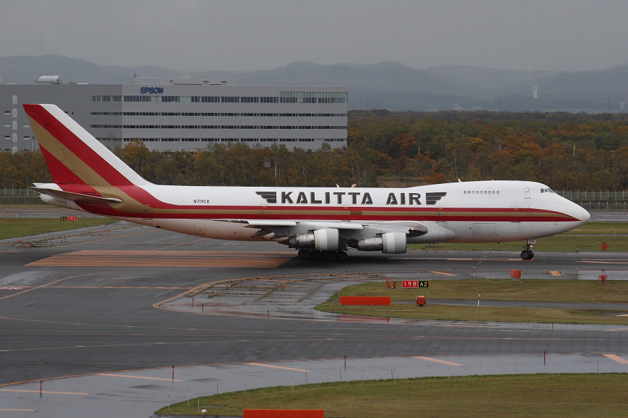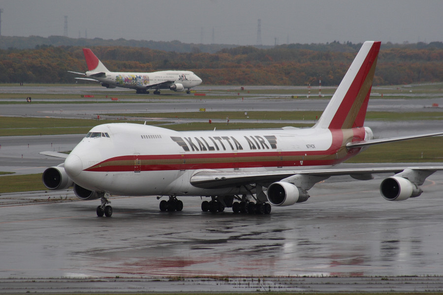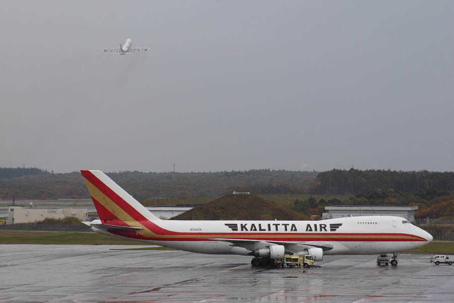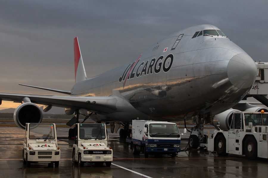 26日から開催された、ラリージャパンで使用されるラリーカーを積んでロンドンから飛来した、B747-400F(JA402J)。
