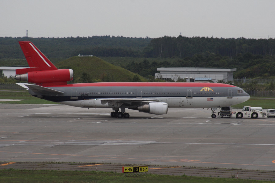 20番台スポットに駐機していたのは、旧ノースカラーのATA、しかもDC-10(゚∀゚;)