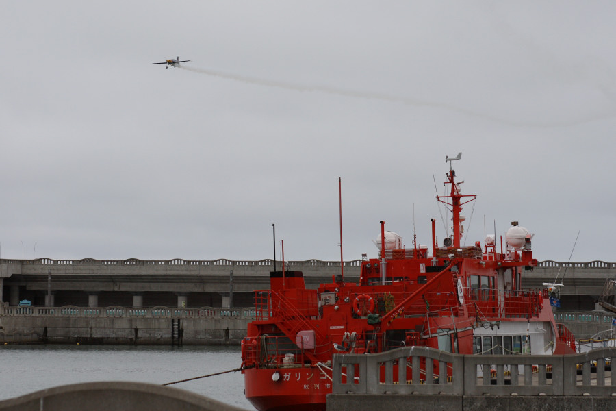 前日の台風通過の影響か、曇り空で時折霧雨も降る天候でしたが、なんとか午前、午後のエアロバティックフライトが実施されました(笑)