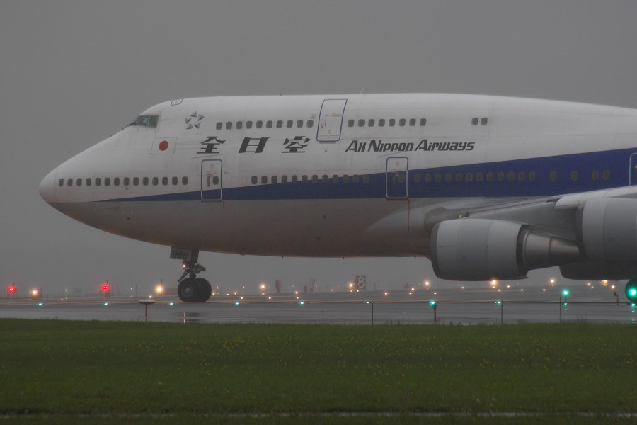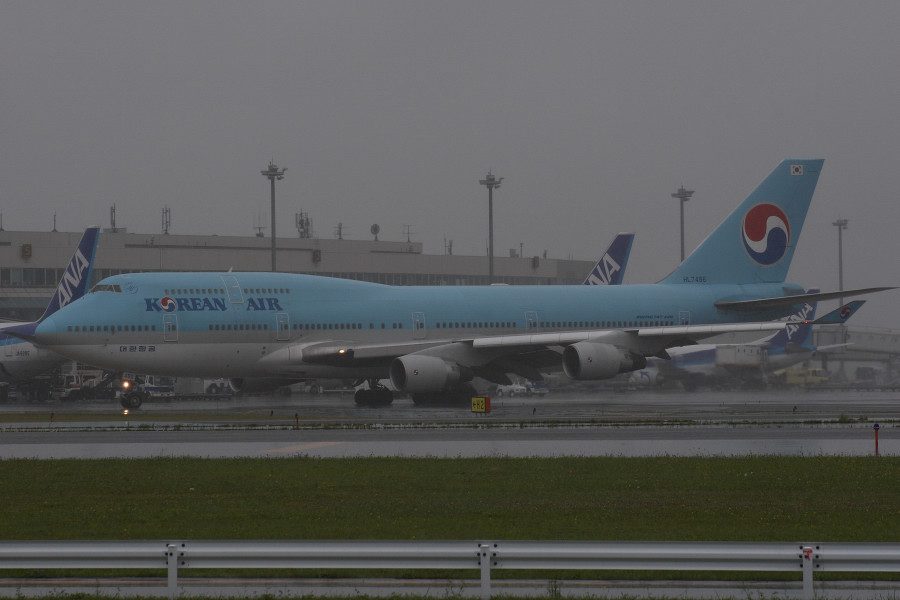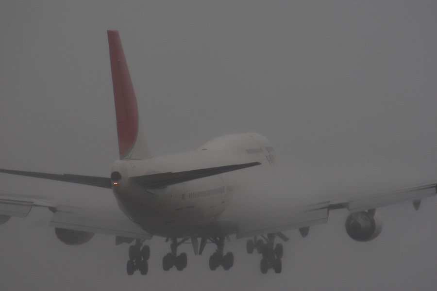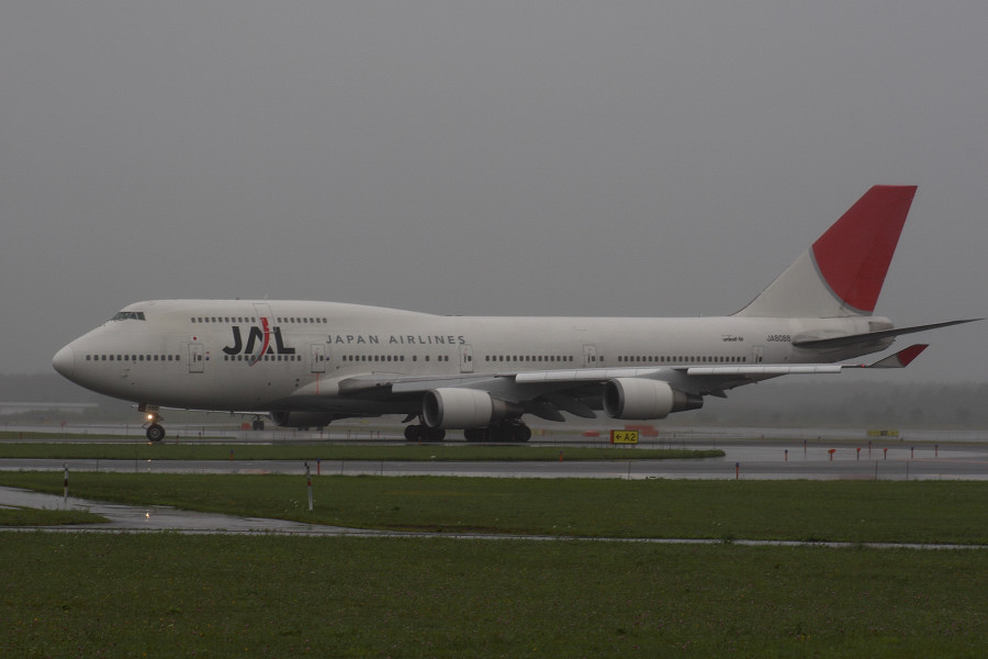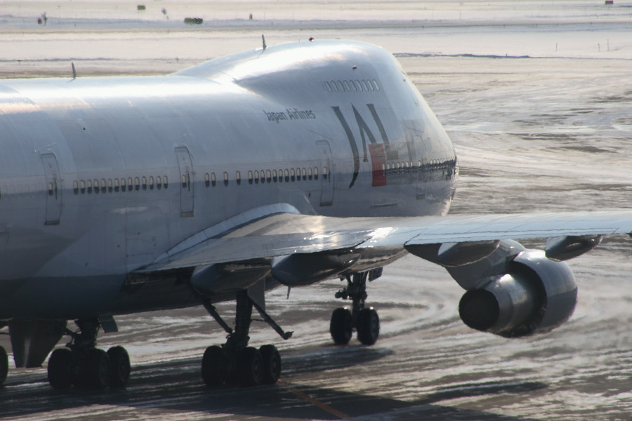 機材は744(JA8088)、燃料満載で翼が重たそうです(゚∀゚;)
