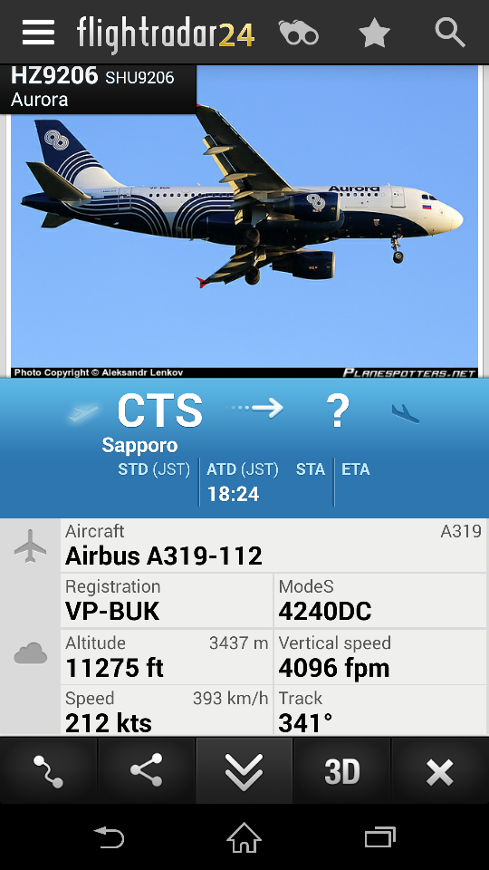 実機は撮れなかったので、フライトレーダーの画面を(笑)