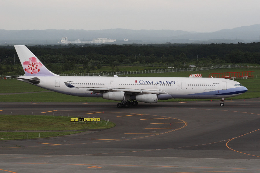 CI2130/2131便で飛来した、A340-300(B-18806)。