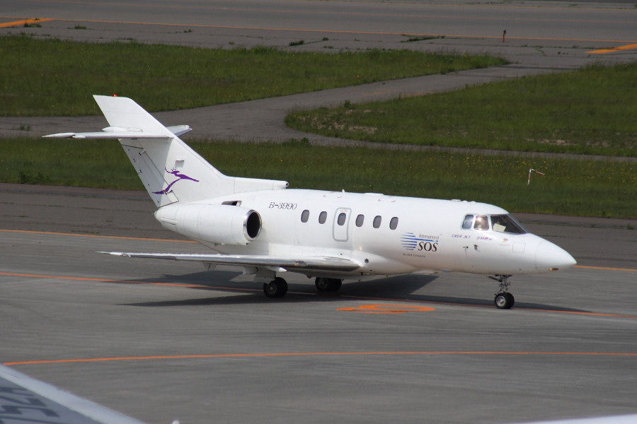 お昼頃降りてきて、1時間ほどで北京へ向かったInternational SOS(Deer Jet)のB-3990。