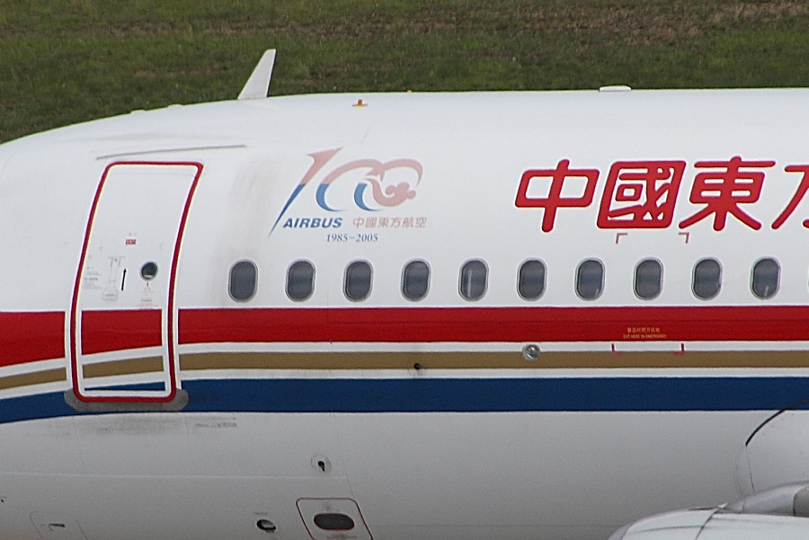 この機体には、中国東方航空がエアバスから導入した、100機目のエアバス機という事を記念したステッカーが貼り付けられている機体でした(^^♪