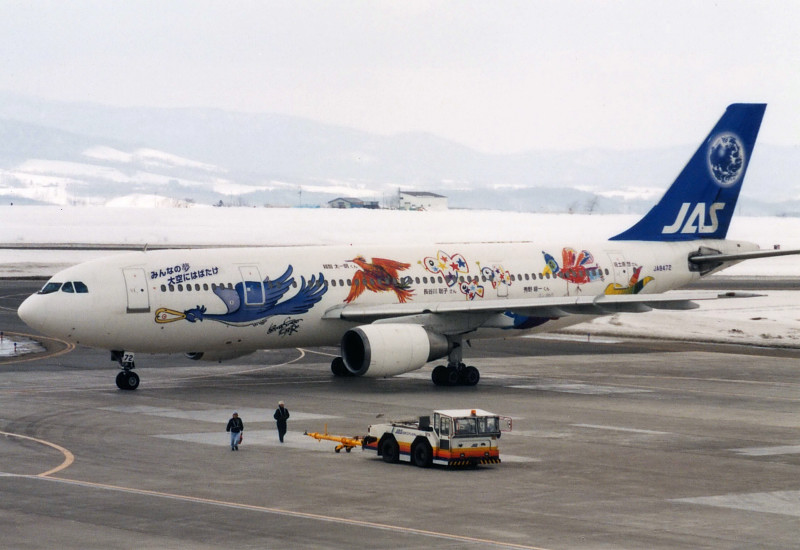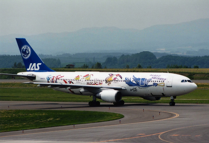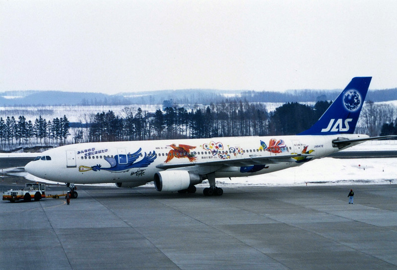 2001年に、日本エアシステムは創立30周年記念の一環として「JAS鳥の絵コンテスト」を実施。漫画家の松本零士さんらの審査委員によって日本・中国各5点の優秀作品が選ばれ、これらの優秀作品と松本さんの描く鳥の絵がペイントされた特別塗装機、「JASフレンドリーバード」が10月8日に就航しました(初日は東京~帯広、徳島、旭川に就航)。