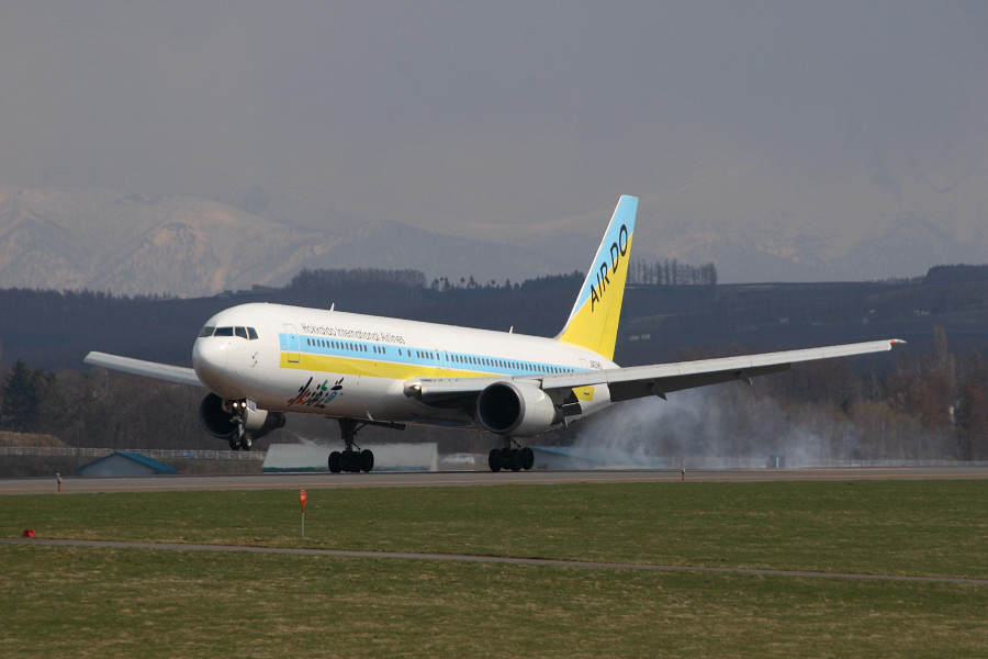 普段ならば734での運航ですが、今日は734整備の影響でこの便と、夜の便(HD37/38便)に763が使用されました。