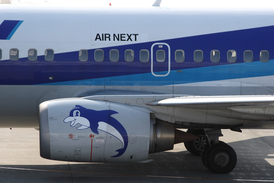 そう!!イルカが被っている帽子に書かれてある「ANK」の文字が、「AIR NEXT」の機材には書かれていないのですヽ(;´Д`)ノ
