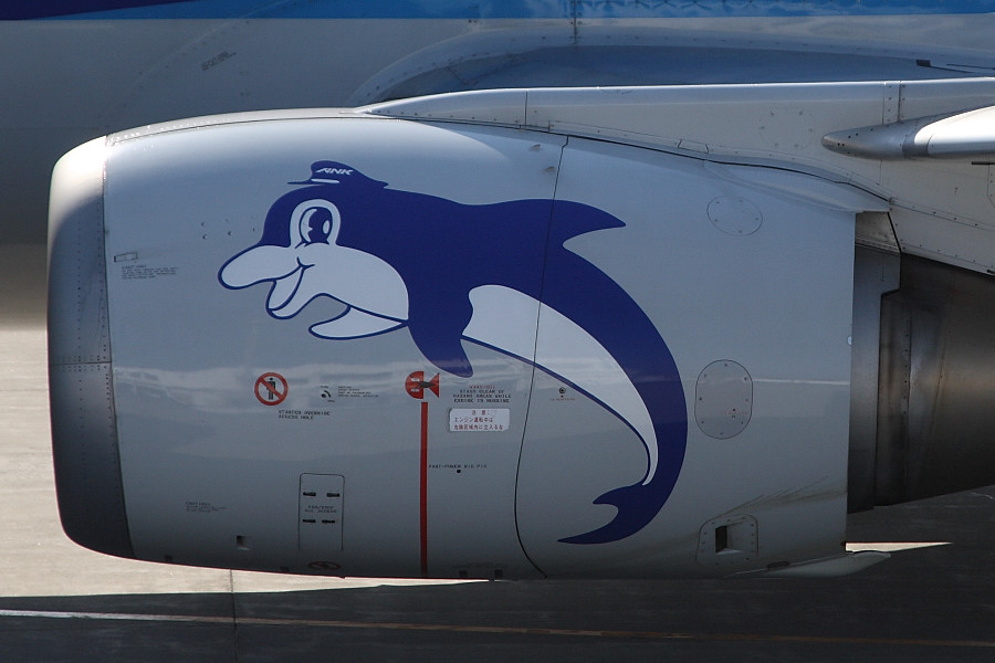 この機体のエンジンには、ご存知のように可愛いイルカ(スーパードルフィン)が描かれております。