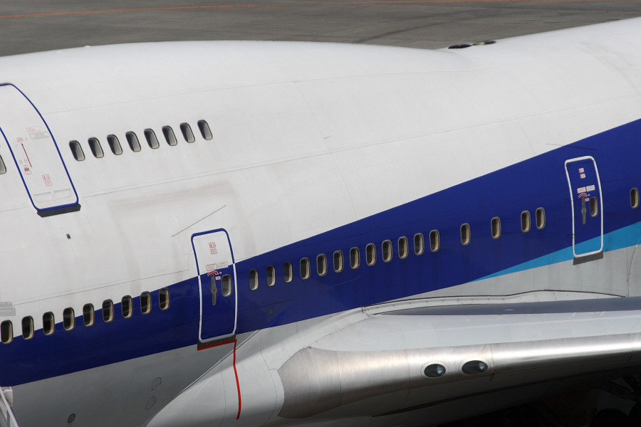画像の機体はANAの744ですが、この機体は元国際線機材のJA401A。