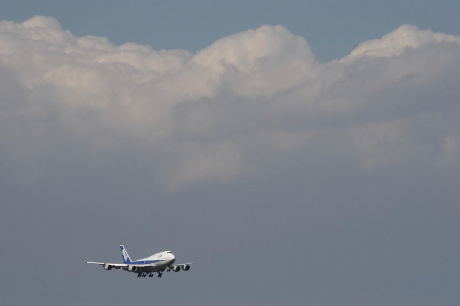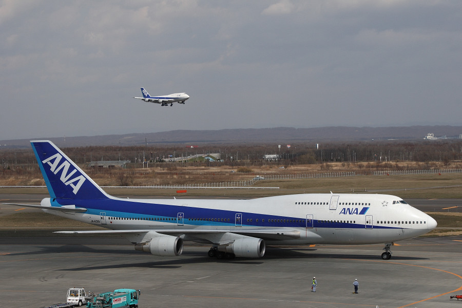 JA401Aとタイミング良く降りてきた、同じくANAの744と絡めて。