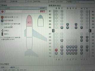 4月30日のJL1000便の座席指定。