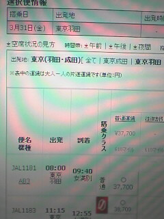 女満別出発前の29日深夜に確認した、31日の東京~女満別線の空席照会より・・・