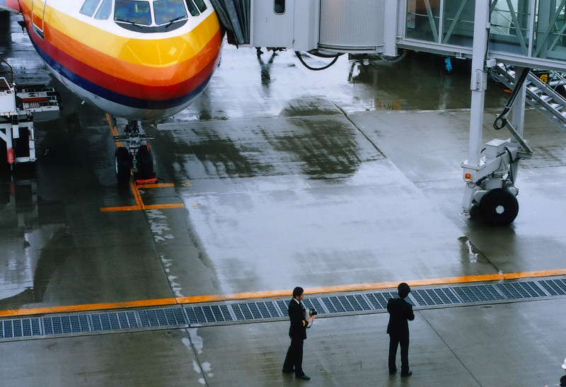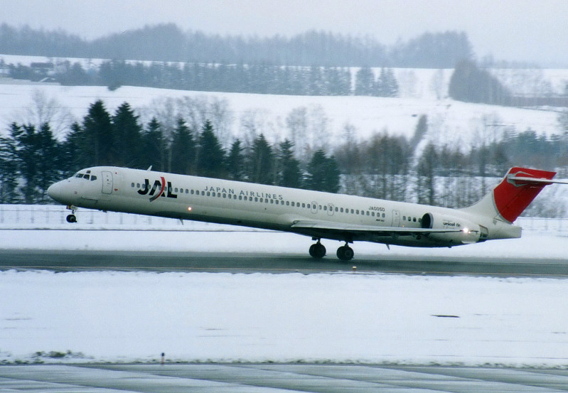 7:50分になり、飛行機への搭乗が始まった。機材はMD-90(JA002D)。