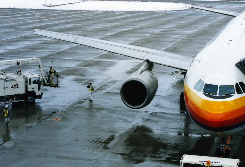 時計を見てみると9:55分、15分遅れだ(JALの発着案内では9:56分到着)。
