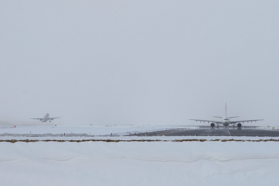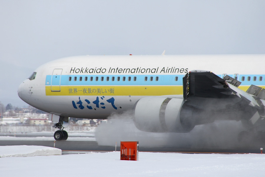 エアドゥの降りる寸前まで吹雪でしたので、降りたあとは水をブワッと巻き上げてくれました(笑)