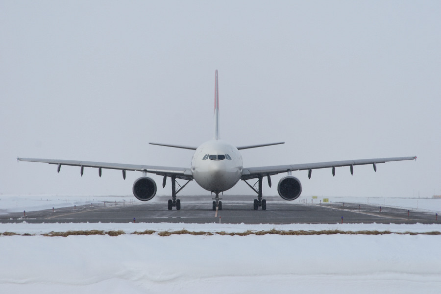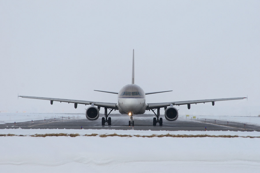 インターネットで空港の天気をチェックすると風は強く午前中は雪の予報でしたが、他は曇りの予報。親からはやはり、天候が悪ければ行かないと言われる程(T_T)