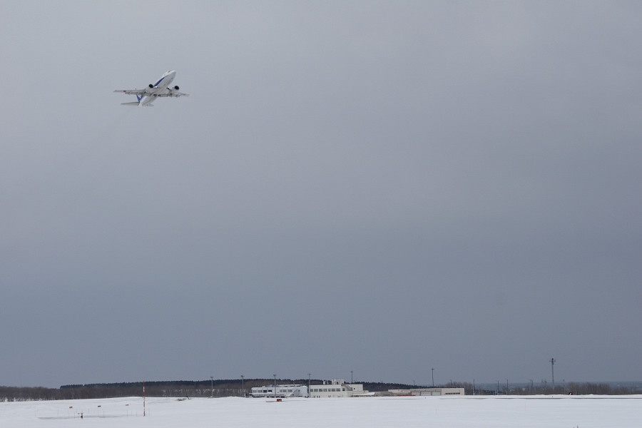 依然として風は強く、虹バスのタキシング中には地吹雪が見られました。寒さに耐えながら、離陸を待つ事に(>_<)