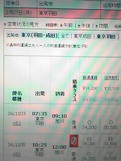 早速、インターネットでJALのHPで東京~旭川線をチェック。予定通り虹バスは旭川へ(^_^)