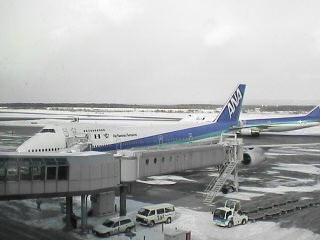 携帯画像ですが、去年2月17日、新千歳でのB747SR(JA8157)を(^^)/