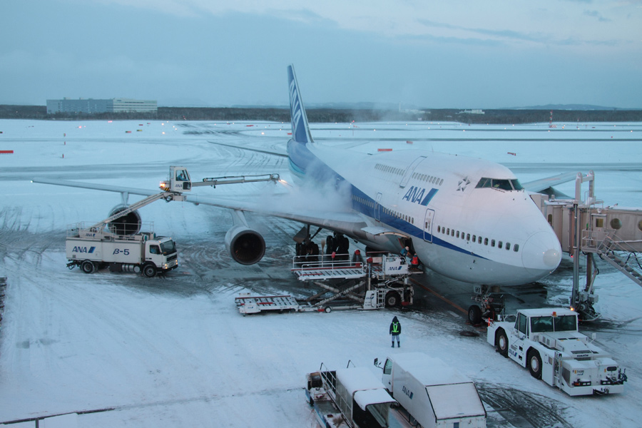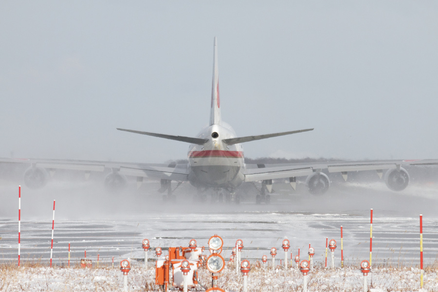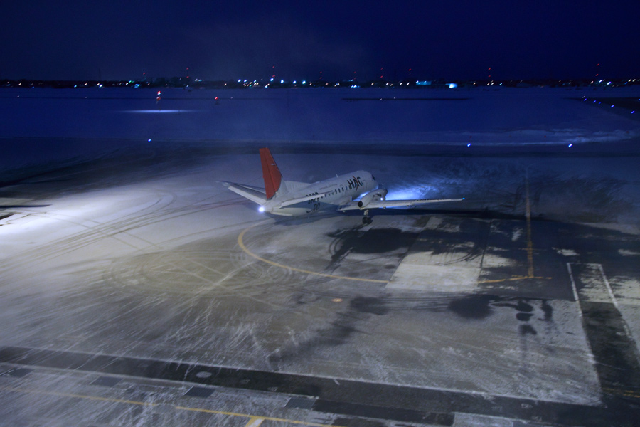 前日の7日は猛吹雪・・・14時頃から降り始め、それ以降は欠航・ダイバート祭に(´・ω・`)