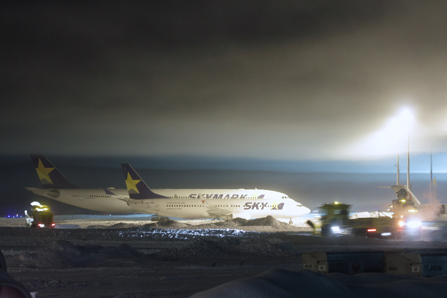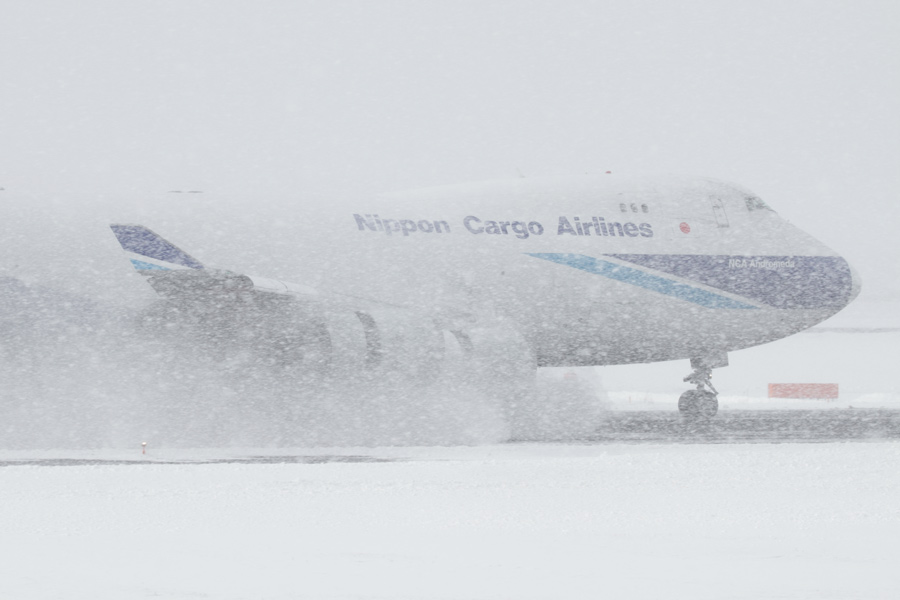 吹雪の中、ホースチャーターでNCAも飛来。