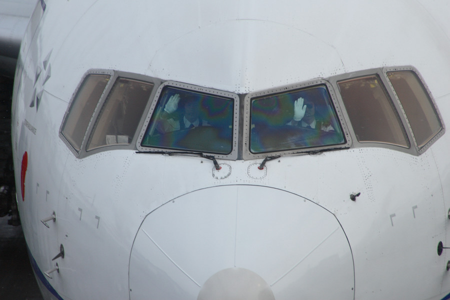 ANAのパイロットさん2人が、こちらに向かって手を振ってくれました(^_^)