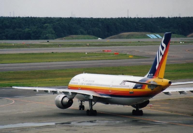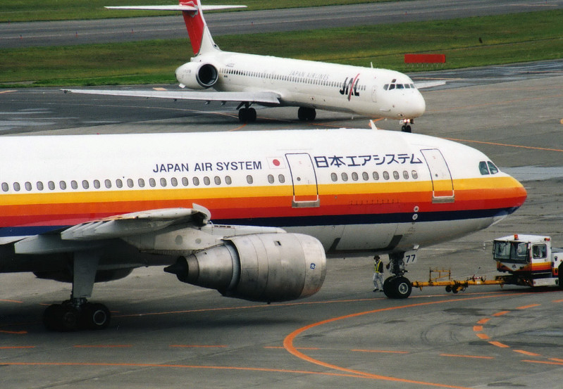 後で知ったのですが、この3日前の9月7日に最後までレインボー7の塗装で頑張っていたJA009Dが、レインボー7でのラストフライトを終えJAL塗装に塗り替えられた。この時点でかなりの数の機体がJAL塗装に塗り替えられ、JAS塗装の機体を見る機会は少なくなっていました(T_T)