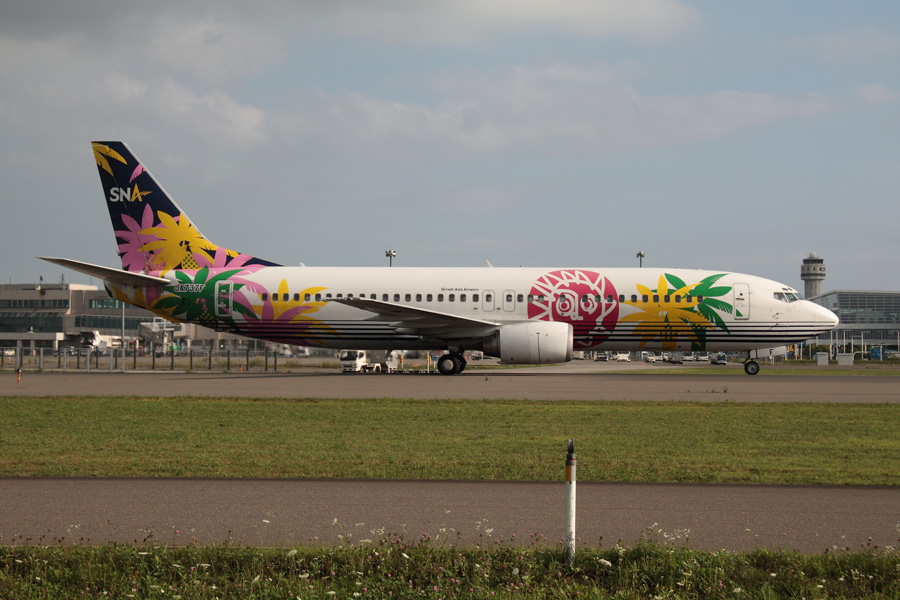 8月に飛来した、スカイネット・アジア航空カラーのB734(JA737F)