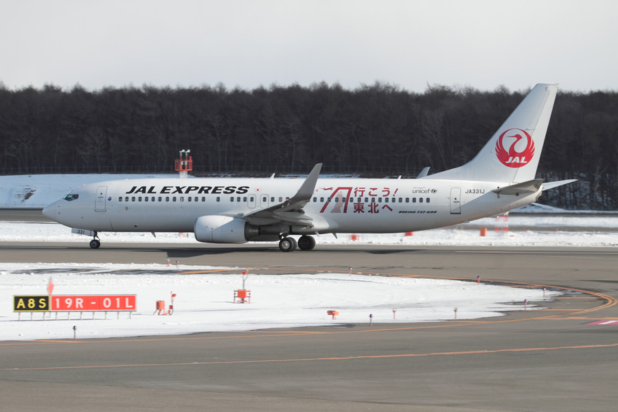 JA737Fは、最後のスカイネットカラー機。売却フライトにて最初で最後の千歳飛来となりました。