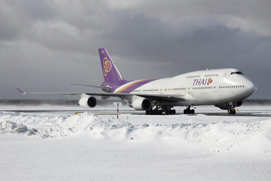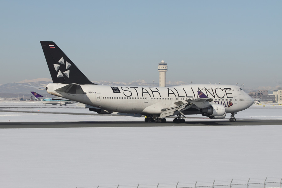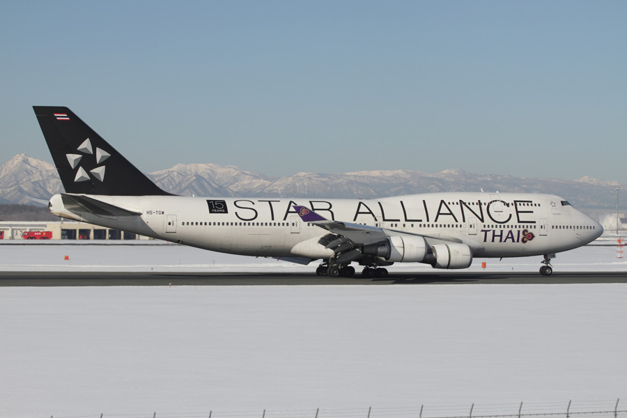 2月12日、タイのB744が千歳初飛来。しかもスタアラ!