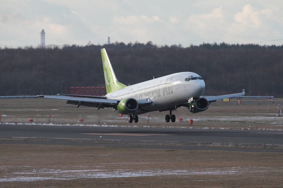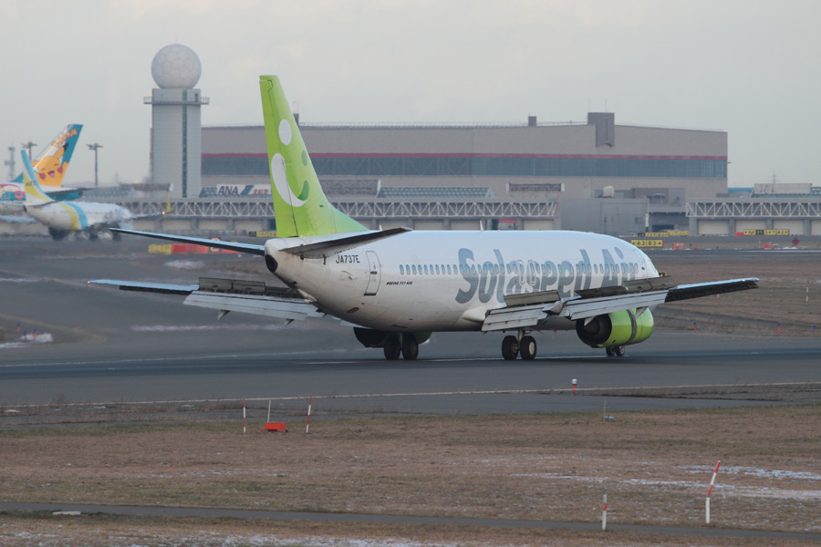 早朝の新千歳に、ソラシドエアのB734が飛来!