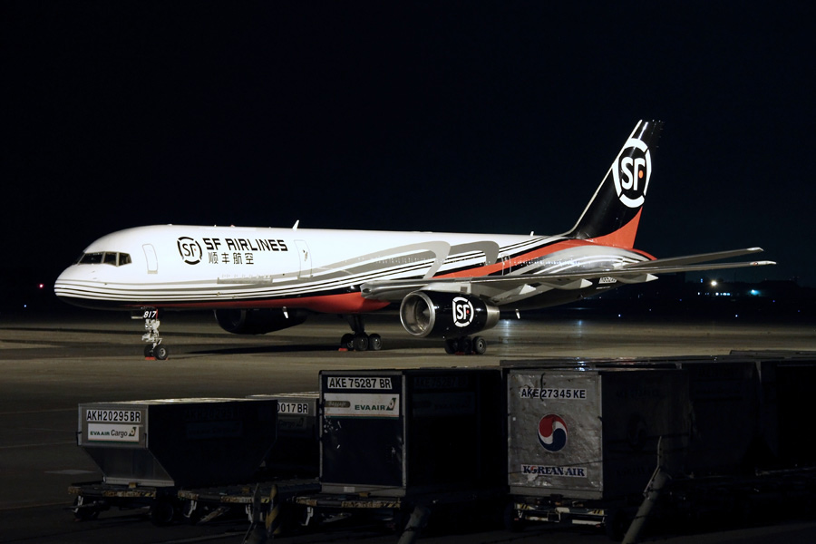 SF Airlinesという、中国の貨物会社のカラーリングで飛来!