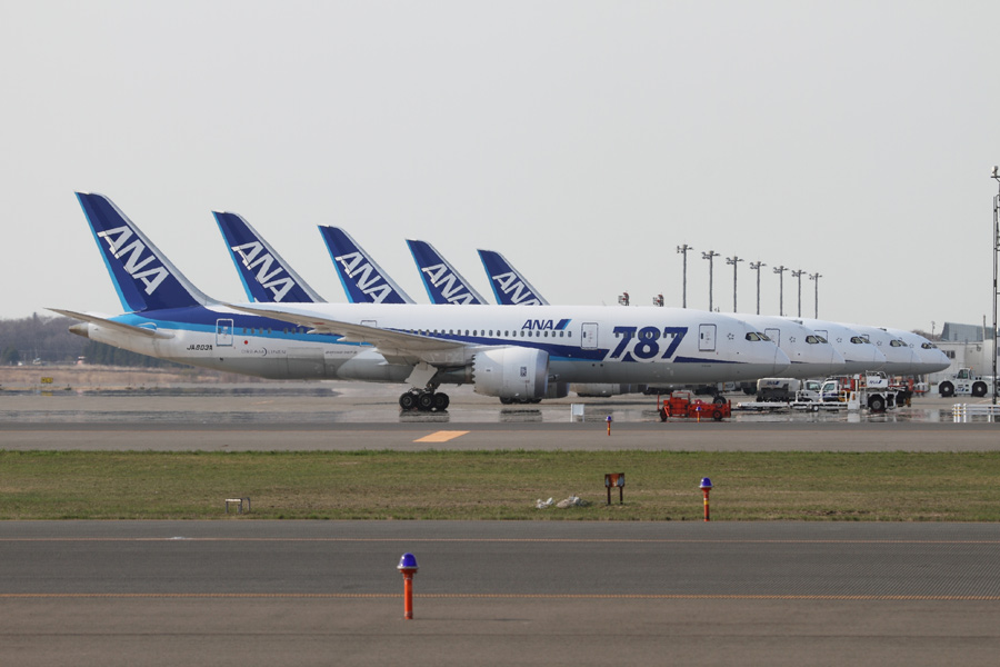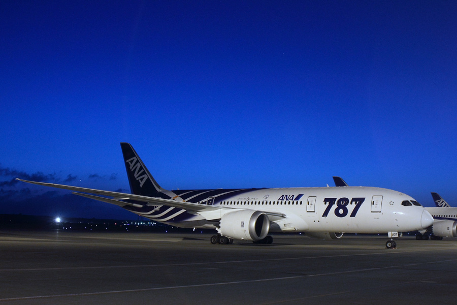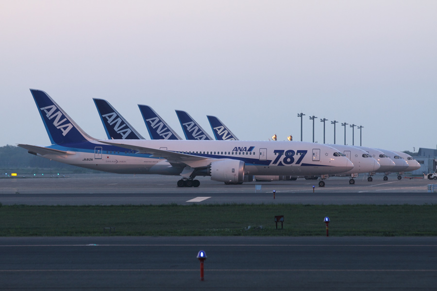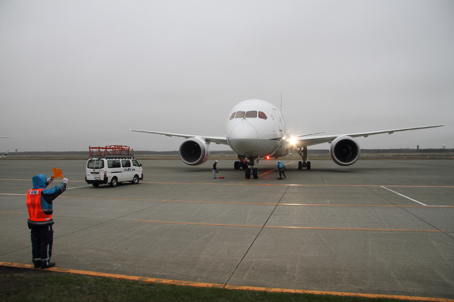 羽田~ロサンゼルス便が機材整備の為、早朝にダイバートで飛来。