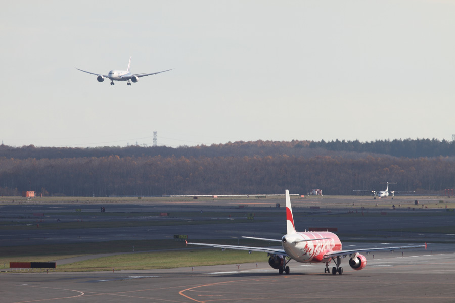 個人的には、夜便は未だに撮れずな状態でしたので、千歳では初B787です(笑)