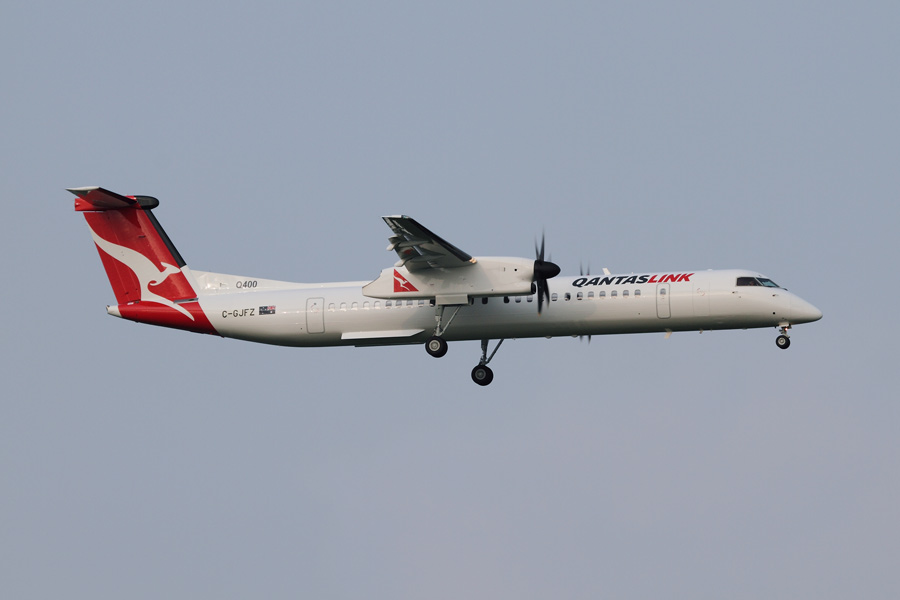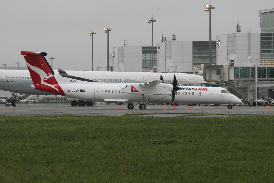 4日は、カンタスリンクのデリバリーフライトで、DHC8-Q400(C-GJKV)