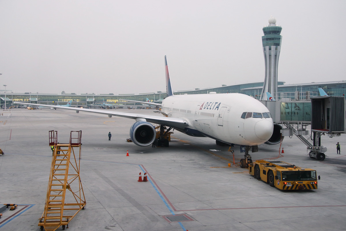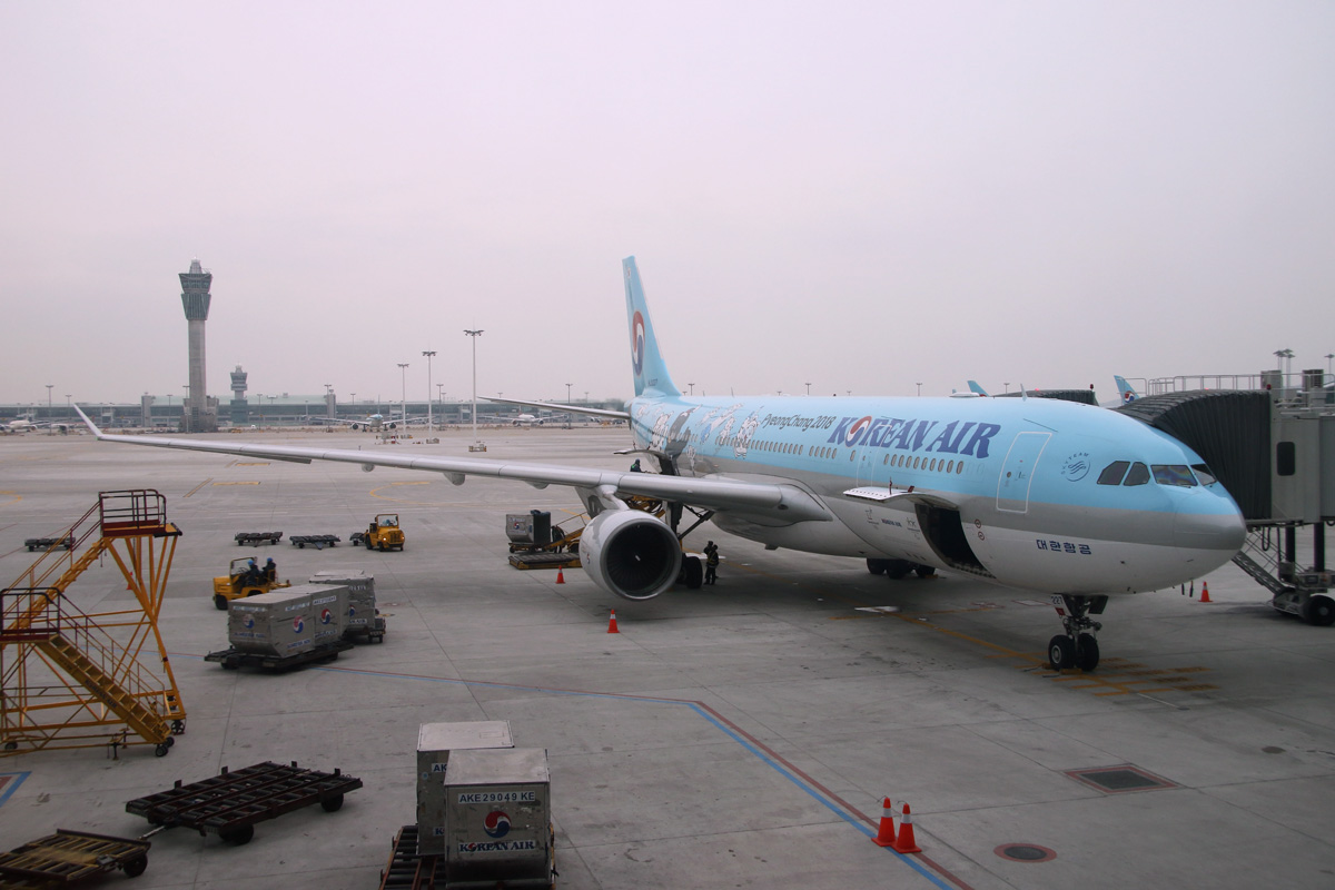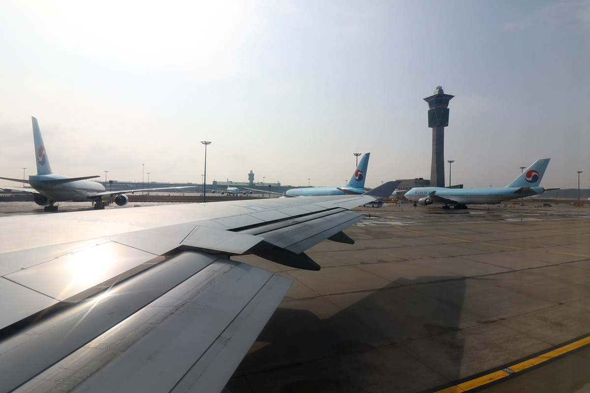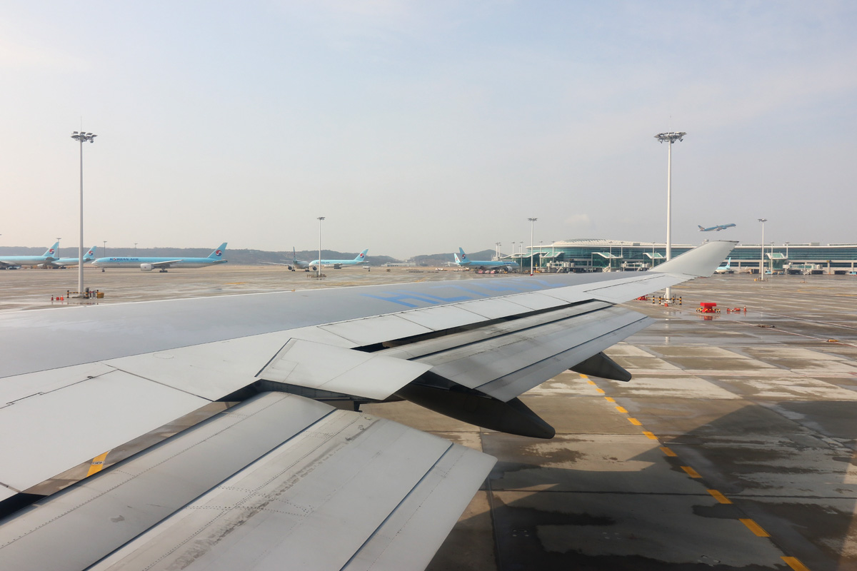 搭乗機。到着はオープンしてまだ間もない仁川第2ターミナル。