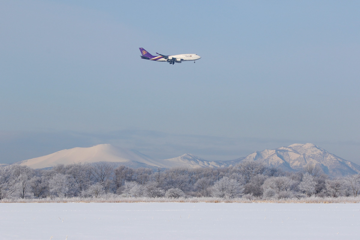 撮っておきたかった、新千歳空港の国際線ターミナルをバックに-400から見る-400。