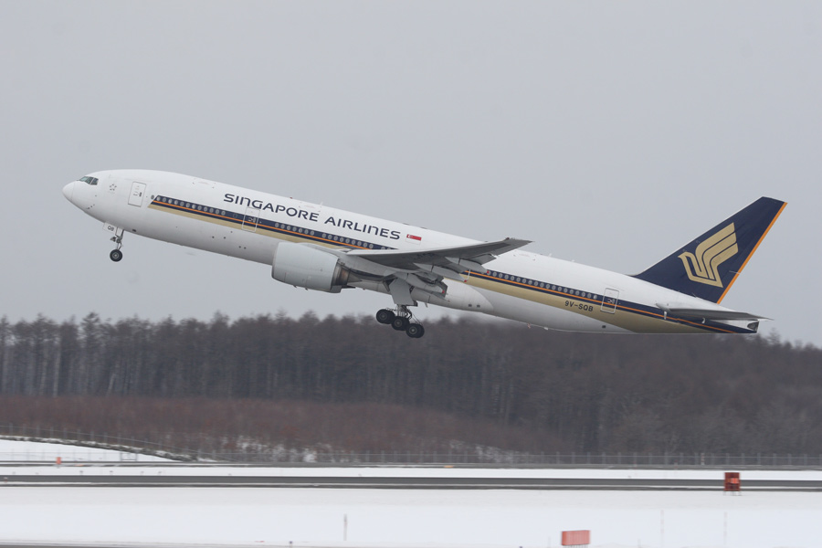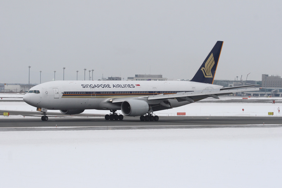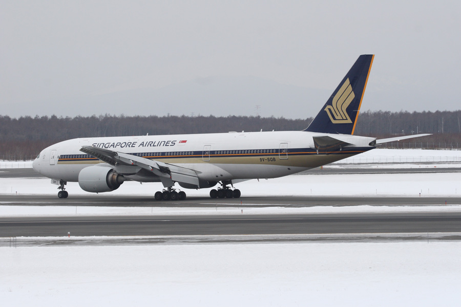 シンガポール航空のB777-200(9V-SQB)も飛来。